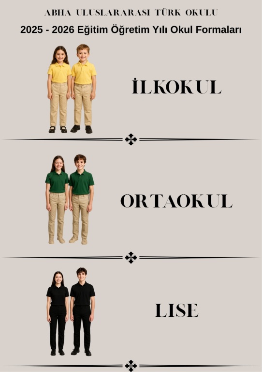 2025/2026 Eğitim Öğretim yılında okulumuz ilkokul,ortaokul ve lise kademesinde giyilecek okul kıyafetlerimiz belirlendi.
